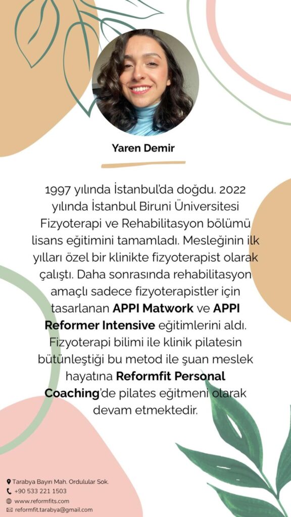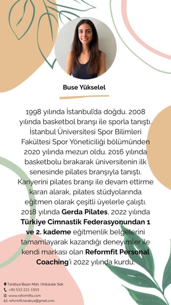 'da yayınlandı Altınay Akkoyunlu22/08/2025Trustindex, incelemenin orijinal kaynağının Google olduğunu doğrular. Yaklaşık 4 yıl önce tesadüfen keşfettiğim ve hayatıma düzenli pilatesi sokan çok sevdiğim stüdyom .. Buse ve Gürkan işlerini titizlikle yapan , sadece bedeninize değil ruhunuza da çok iyi gelen bütünsel bir yaklaşımla derslerini sürdürmekte . Buse Hocam ile her ders tüm vucudu farklı egzersizlerle çalıştırarak güçlü bir bedene sahip oldum .. İyi ki yollarımız kesişmiş 🌺'da yayınlandı Burak Kutlu10/07/2025Trustindex, incelemenin orijinal kaynağının Google olduğunu doğrular. güzel mekan.'da yayınlandı Elmer Monster18/06/2025Trustindex, incelemenin orijinal kaynağının Google olduğunu doğrular. I have been going there for the last two years with the whole family (14 and 11 years old kids). We do fitness, reform Pilates and kick boxing. Love the team, facilities and training. Great experience and great value for money'da yayınlandı cansu boztaş04/06/2025Trustindex, incelemenin orijinal kaynağının Google olduğunu doğrular. Senelerdir reformer pilatese giderim fakat daha önce pilates yapmıyormuşum bee dedirten canım Yaren hocam inanılmaz yetenekli ve aşırı tatlı.. Sırt ağrılarıma derman olmuştur kendisi iyi ki var. Spor salonunda pozitif bir enerji var güler yüzlü tatlı bir çift sahibi. Ama aletli pilates derseniz düşünmeden reformfit Yaren hocam derim ve tek geçerim :)'da yayınlandı Gurtashika Gill28/02/2025Trustindex, incelemenin orijinal kaynağının Google olduğunu doğrular. Reformfit is a place we have frequented for the past two years. Buse and Gurkan are not just great instructors based on their expertise but also have amazing qualities as people. They have helped us make fitness a part of our everyday routine. if you are looking for a nice , friendly atmosphere and great company while you strive for your fitness goals, Reformfit Tarabya is the place.'da yayınlandı merve Erol27/02/2025Trustindex, incelemenin orijinal kaynağının Google olduğunu doğrular. Yıllardır düzenli gittiğim tek spor salonu. Sahipleri Buse&Gürkan işlerini son derece ciddiye alan iki eğitmen 💪🤸'da yayınlandı Bige Öcal25/06/2024Trustindex, incelemenin orijinal kaynağının Google olduğunu doğrular. Birkaç aydır Buse hocayla reformer pilates yapıyorum. Antrenmanları tamamen benim ihtiyaçlarıma ve seviyeme göre ayarlıyor. Güleryüzü ve pozitif tavrıyla 1 saatlik ders 10 dakika gibi geliyor, her ders sonu bu kadar keyifli ve hızlı geçmesine şaşırıyorum. Ders esnasında komik hareketleriyle eğlendiren salonun tüylü demirbaşı Kekik de büyük bir artı :) Tarabya civarı profesyonel ve sakin butik bir spor salonu arayanlar için harika bir yer, tavsiye ederim.'da yayınlandı İ Ş03/05/2024Trustindex, incelemenin orijinal kaynağının Google olduğunu doğrular. Buse ve Gürkan Hocam işlerini severek yapan iki antrenör. Her ikisi ile de çalışma fırsatım oluyor. İnsanın kendini konforlu bir ortamda hissetmesi ve işini doğru yapan kişilerle çalışması harika. Her ikisine de teşekkürler…Doğrulayan: TrustindexTrustindex doğrulanmış rozeti, Güvenin Evrensel Sembolüdür. Sadece en iyi şirketler, 4.5 üzerinde bir değerlendirme puanına sahip olan doğrulanmış rozeti alabilir, son 12 ay içinde müşteri incelemelerine dayalı olarak. Daha fazla oku